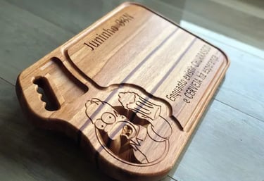 Planche à découper et apéro gravées au laser, sur-mesure et résinées.